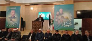 كلمة حركة المقاومة الإسلامية حماس ألقاها مسؤولها السياسي في إقليم الخروب حسن العريض، أكد فيها أن الاحتلال لن يفلح في كسر إرادة المقاومة والصمود لدى شعبنا ومقاومتنا، “فاغتيال قيادات الحركة ورموزها لن يزيدها إلاَّ قوّة وإصراراً وتصميماً على المضي في درب المقاومة حتى تحرير الأرض والمقدسات.”