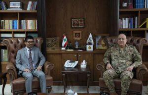 استقبل قائد الجيش بالنيابة اللواء الركن حسان عوده في مكتبه في اليرزة، السفير الهندي في لبنان السيد محمد نور رحمان شيخ يرافقه كل من السكرتير الثاني القنصل Ajay Kumar والملحق العسكري الهندي العقيد Manuj Garg مع وفد مرافق، وجرى التداول في علاقات التعاون بين جيشي البلدين.