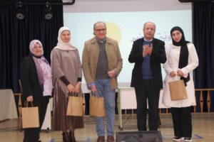 واختتم الحفل بالمسابقة الثقافيّة ” لكلّ سؤال جواب”، من إعداد وتقديم الأستاذة ماجدة البني، شارك فيها الحضور إلكترونيًّا ، وأعلنت النتائج ، وجرى توزيع الهدايا على الفائزين. وقدم الدكتور ناصر الدين هدايا تذكارية لأسرة الثانوية عبارة عن صورة لزهرة الأقحوان تحمل اسم كل منهم” .